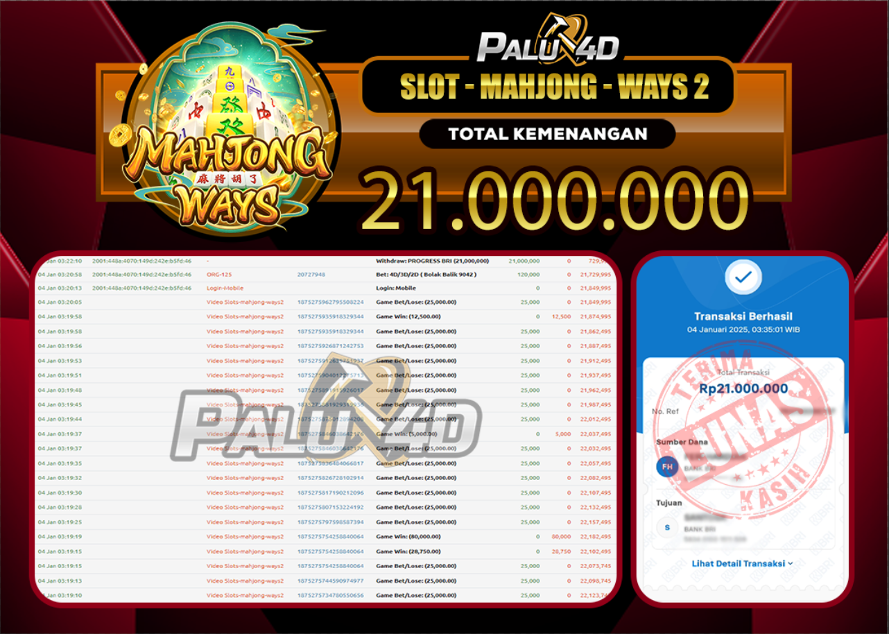 03/01/202501/02/2025SLOT PALU4D – Menang Slot MAHJONG WAYS Rp.21.000.000.,- LUNAS PALU4D – Menang Slot MAHJONG WAYS Rp.21.000.000.,- LUNAS PALU4D – Selamat bagi pemenang yang mendapatkan jackpot hari ini 04 January 2025 di […]