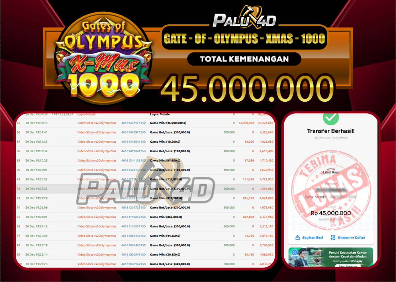 03/01/202501/02/2025SLOT PALU4D – Menang Slot GATE OF OLYMPUS Rp.45.000.000.,- LUNAS PALU4D – Menang Slot GATE OF OLYMPUS Rp.45.000.000.,- LUNAS PALU4D – Selamat bagi pemenang yang mendapatkan jackpot hari ini 30 Desember 2024 […]