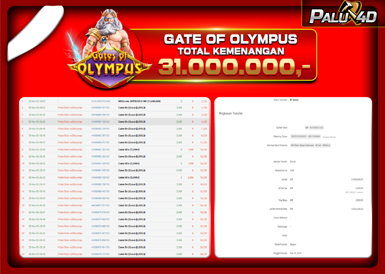 PALU4D – Menang Slot GATES OF OLYMPUS Rp.31.000.000.,- LUNAS