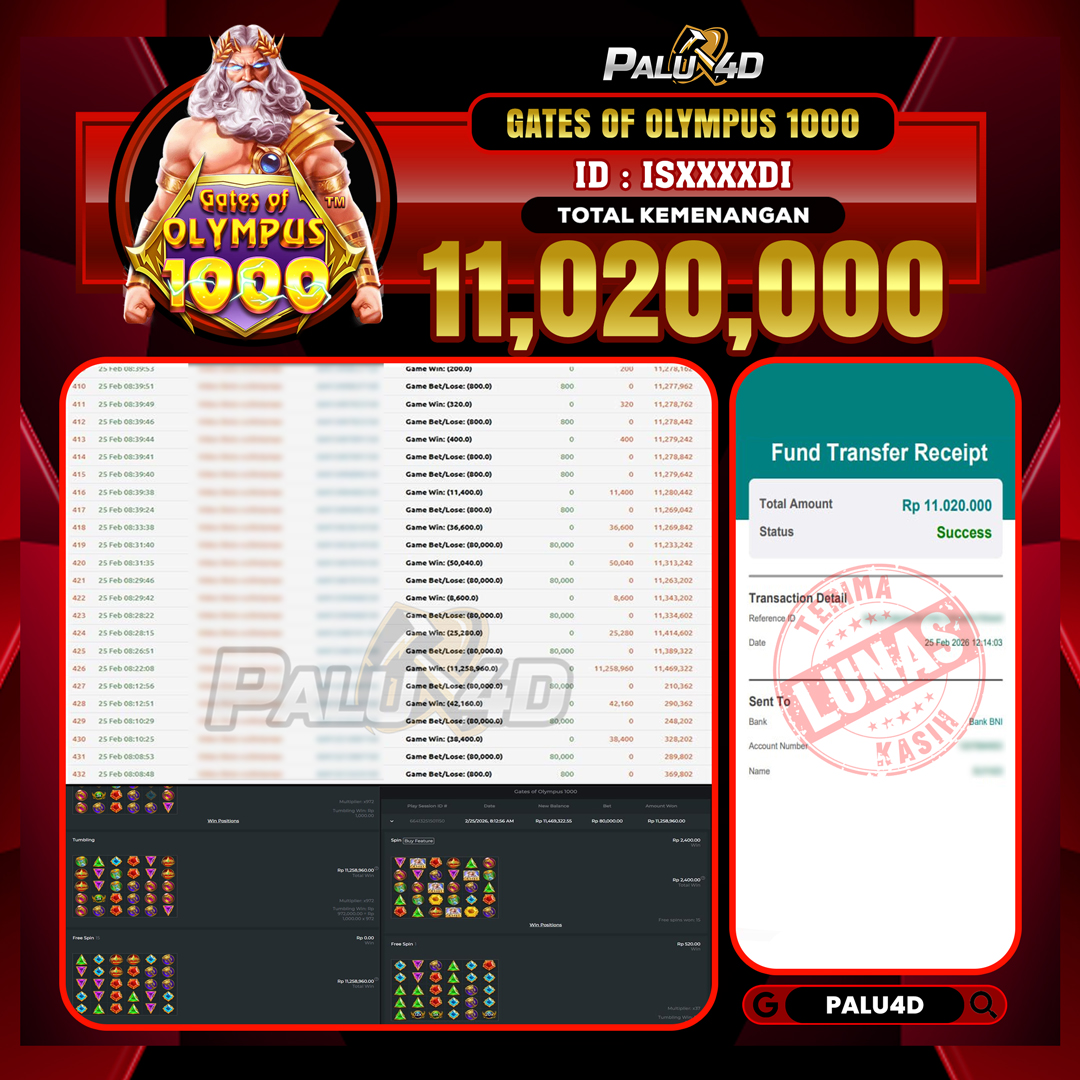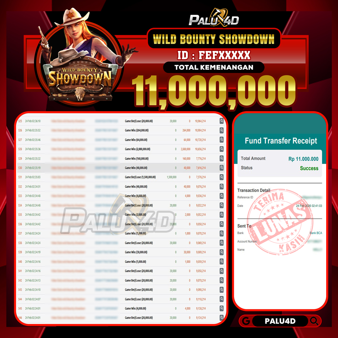 PALU4D – Menang Slot WILD BOUNTY SHOWDOWN Rp.11.000.000.,- LUNAS PALU4D – Selamat bagi pemenang yang mendapatkan jackpot hari ini 24 FEBUARI 2026 di […]