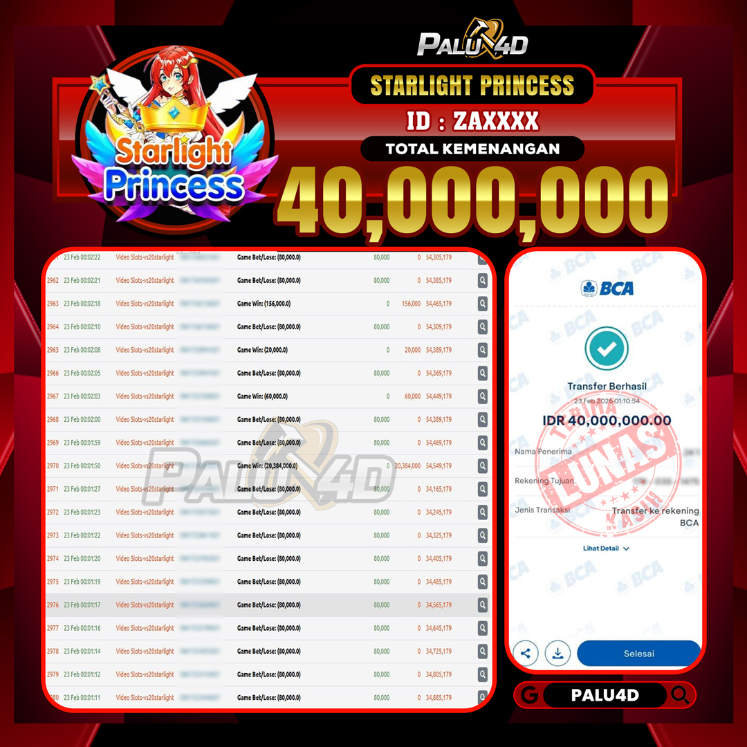 PALU4D – Menang Slot STARLIGHT PRINCESS Rp.40.000.000.,- LUNAS PALU4D – Selamat bagi pemenang yang mendapatkan jackpot hari ini 23 FEBRUARI 2026 di […]