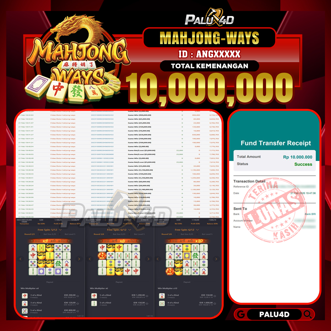 PALU4D – Menang Slot MAHJONG WAYS Rp.10.000.000.,- LUNAS PALU4D – Selamat bagi pemenang yang mendapatkan jackpot hari ini 21 FEBRUARI 2026 di game Slot […]