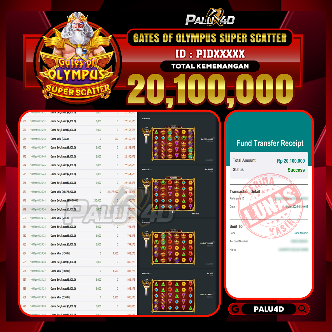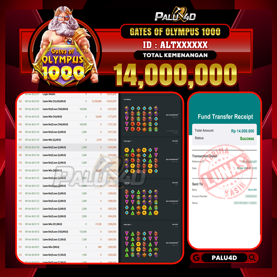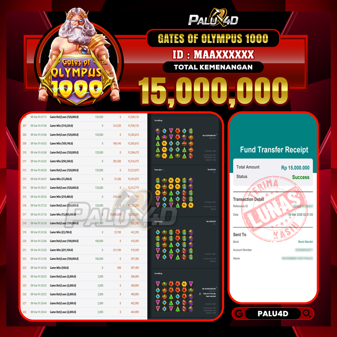 PALU4D – Menang Slot GATES OF OLYMPUS 1000  Rp15.000.000.,- LUNAS