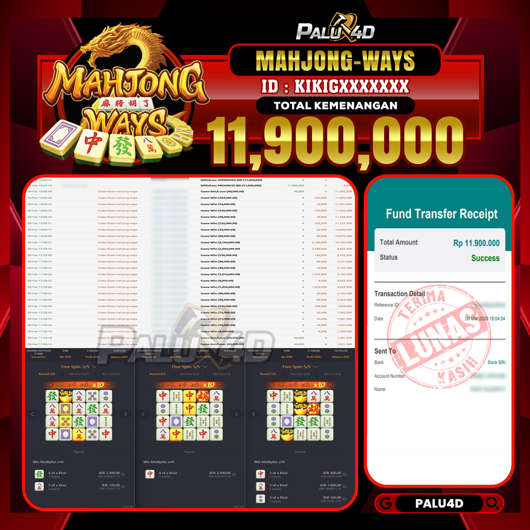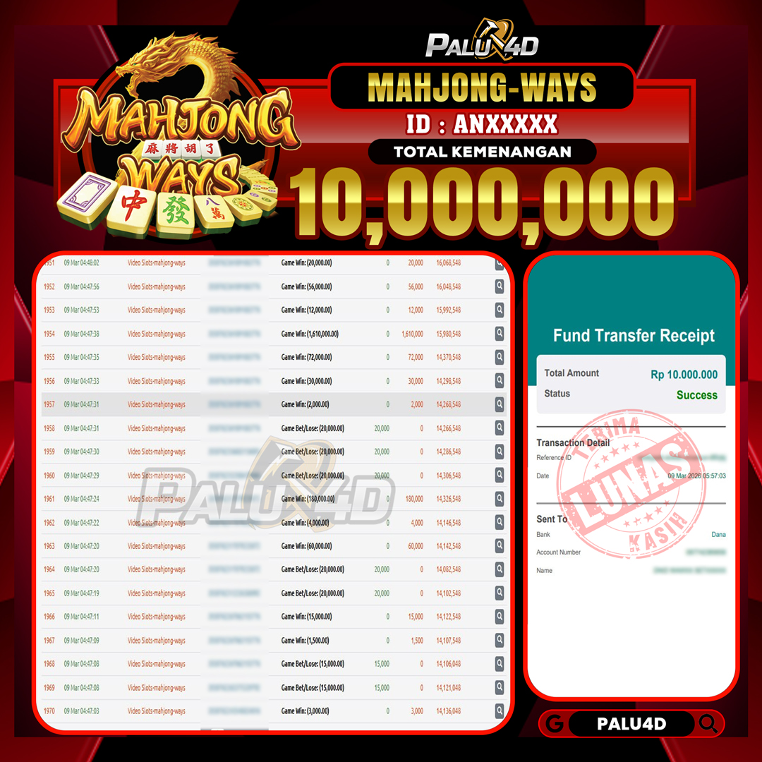 PALU4D – Menang Slot MAHJONG WAYS   Rp.10.500.000.,- LUNAS