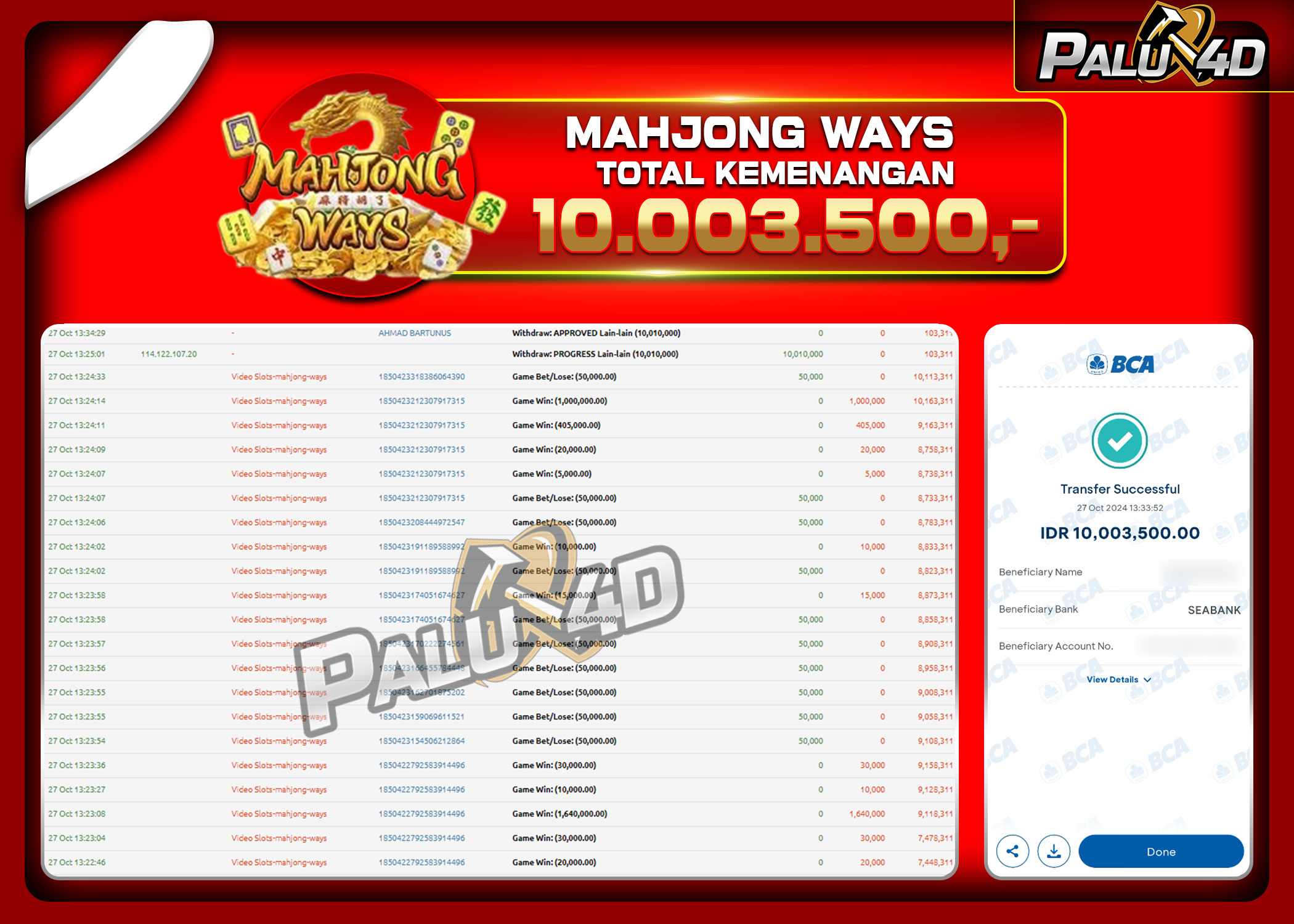 28/10/202428/10/2024SLOT PALU4D – Menang Slot MAHJONG WAYS Rp.10.003.500.,- LUNAS PALU4D – Menang Slot MAHJONG WAYS Rp.10.003.500.,- LUNAS PALU4D – Selamat bagi pemenang yang mendapatkan jackpot hari ini 28 OKTOBER 2024 di […]