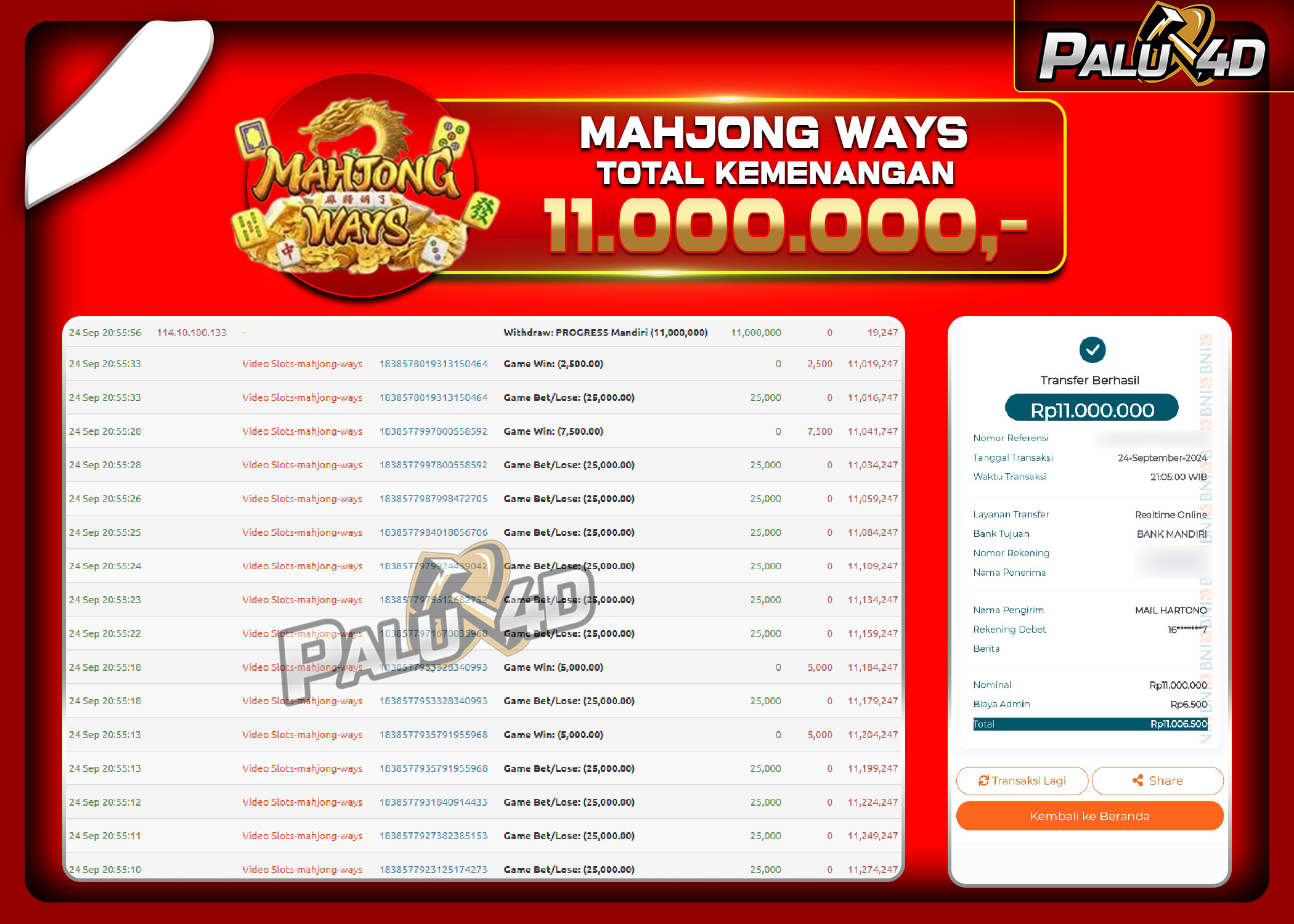 25/09/2024SLOT PALU4D – Menang Slot MAHJONG WAYS Rp.11.000.000.,- LUNAS PALU4D – Menang Slot MAHJONG WAYS Rp.11.000.000.,- LUNAS PALU4D – Selamat bagi pemenang yang mendapatkan jackpot hari ini 24 September 2024 di […]