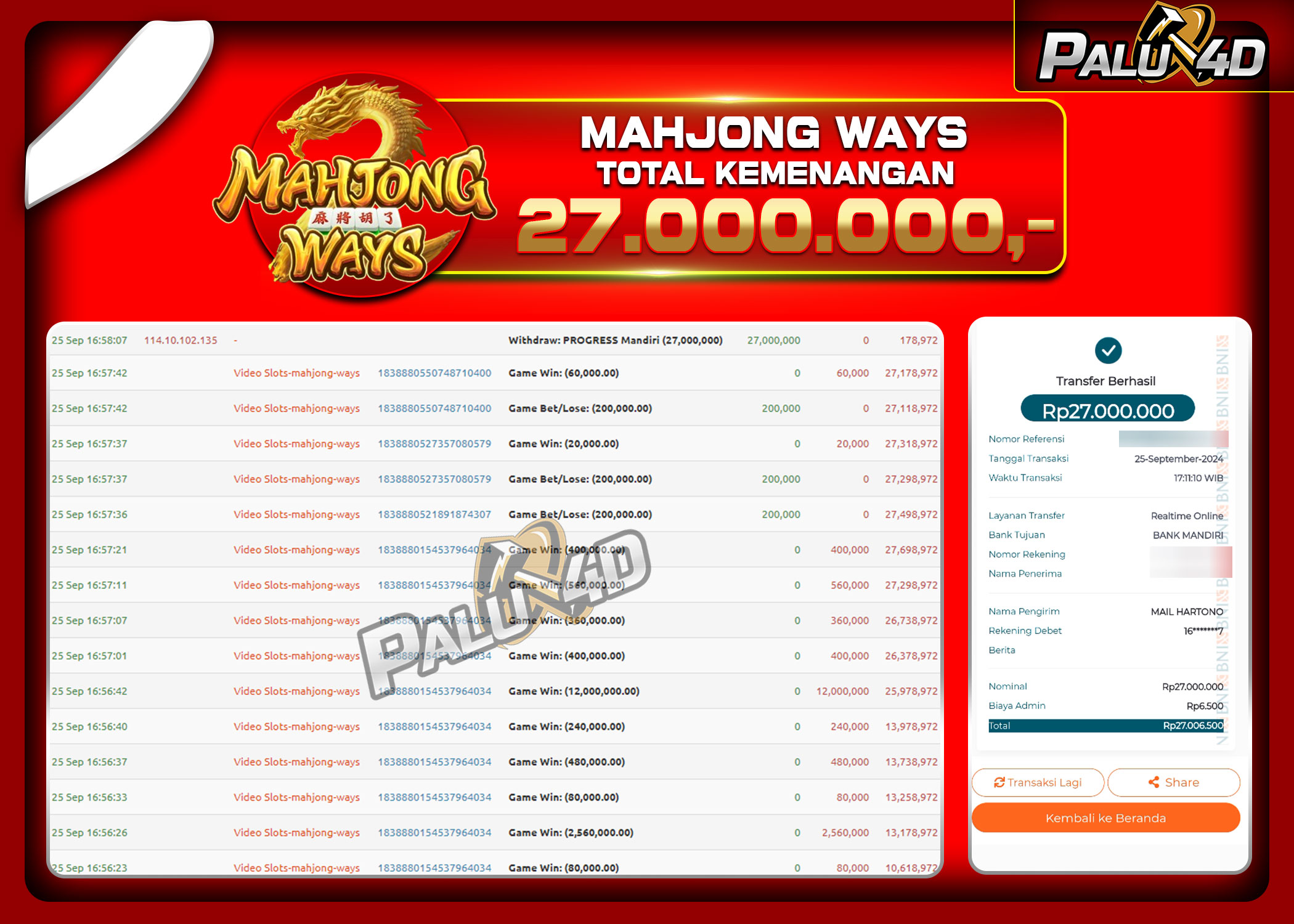 26/09/2024SLOT PALU4D – Menang Slot MAHJONG WAYS Rp.27.000.000.,- LUNAS PALU4D – Menang Slot MAHJONG WAYS Rp.27.000.000.,- LUNAS PALU4D – Selamat bagi pemenang yang mendapatkan jackpot hari ini 25 September 2024 di […]