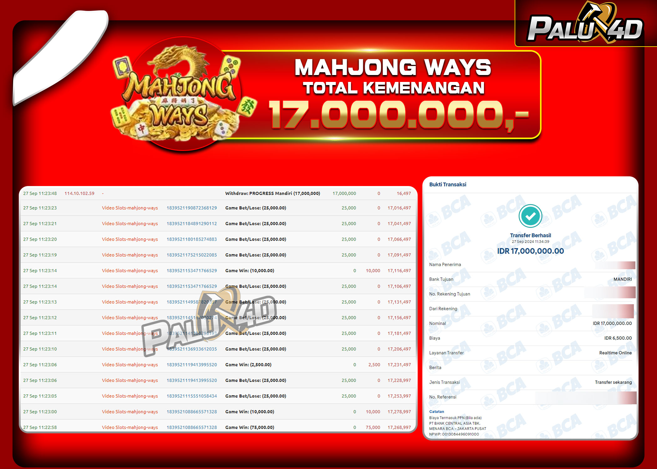 27/09/2024SLOT PALU4D – Menang Slot MAHJONG WAYS Rp.17.000.000.,- LUNAS PALU4D – Menang Slot MAHJONG WAYS Rp.17.000.000.,- LUNAS PALU4D – Selamat bagi pemenang yang mendapatkan jackpot hari ini 27 September 2024 di […]