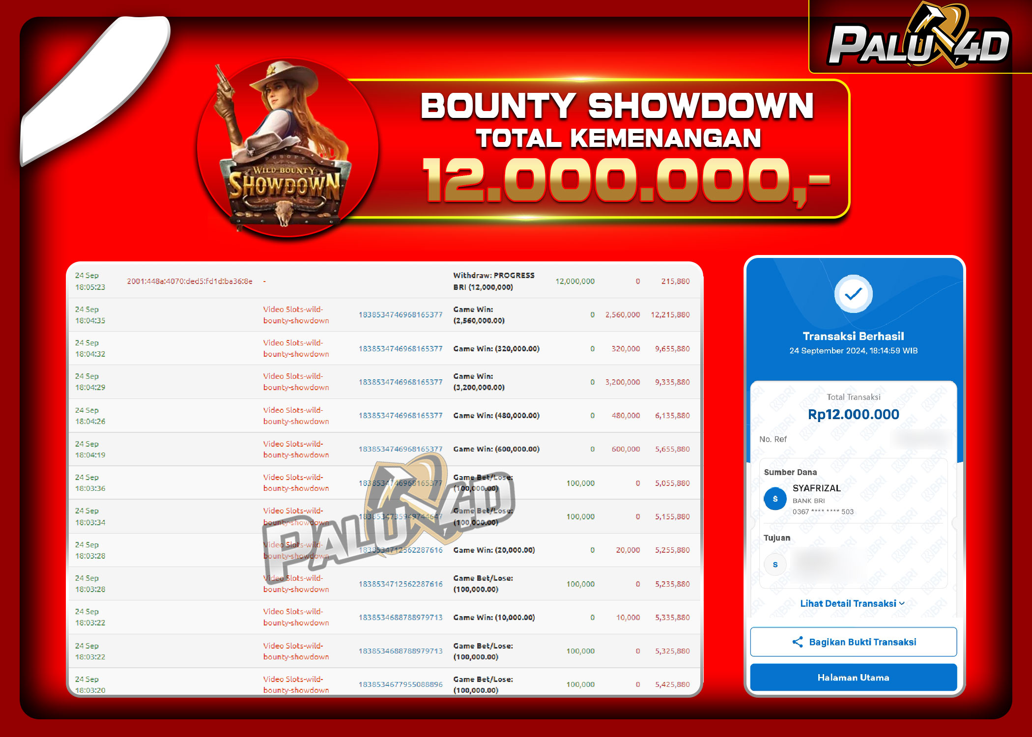 PALU4D – Menang Slot WILD BOUNTY SHOWDOWN Rp.12.000.000.,- LUNAS PALU4D – Selamat bagi pemenang yang mendapatkan jackpot hari ini 24 September 2024 […]