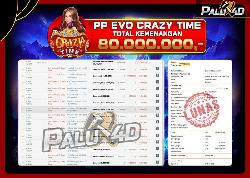 06/11/2025LIVE CASINO PALU4D – Menang Live Games EVO CRAZY TIME Rp 80.000.000.,- LUNAS PALU4D – Menang Live Games EVO CRAZY TIME Rp 80.000.000.,- LUNAS PALU4D – Selamat bagi pemenang yang mendapatkan jackpot hari ini 04 […]