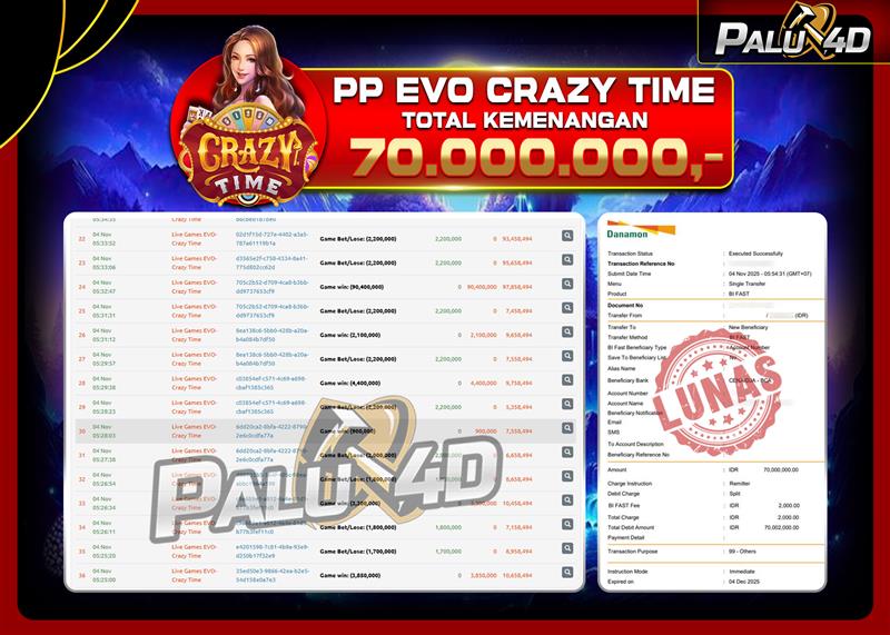 06/11/202506/11/2025LIVE CASINO PALU4D – Menang Live Games CRAZY TIME Rp 20.000.000.,- LUNAS PALU4D – Menang Live Games CRAZY TIME Rp 20.000.000.,- LUNAS PALU4D – Selamat bagi pemenang yang mendapatkan jackpot hari ini 05 NOVEMBER […]