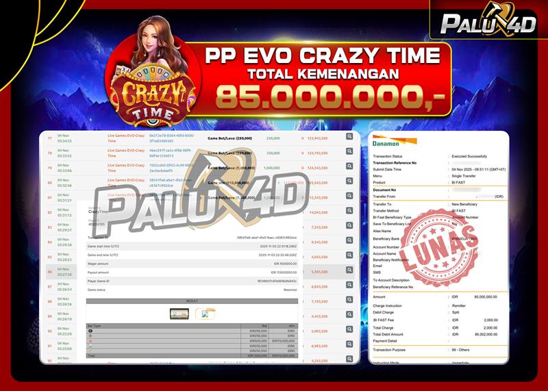 06/11/202506/11/2025LIVE CASINO PALU4D – Menang Live Games MONEY TIME Rp 10.000.000.,- LUNAS PALU4D – Menang Live Games MONEY TIME Rp 10.000.000.,- LUNAS PALU4D – Selamat bagi pemenang yang mendapatkan jackpot hari ini 05 NOVEMBER […]