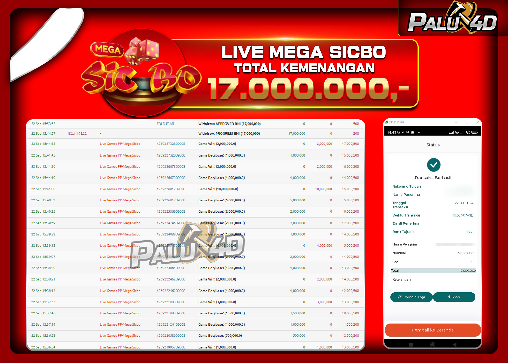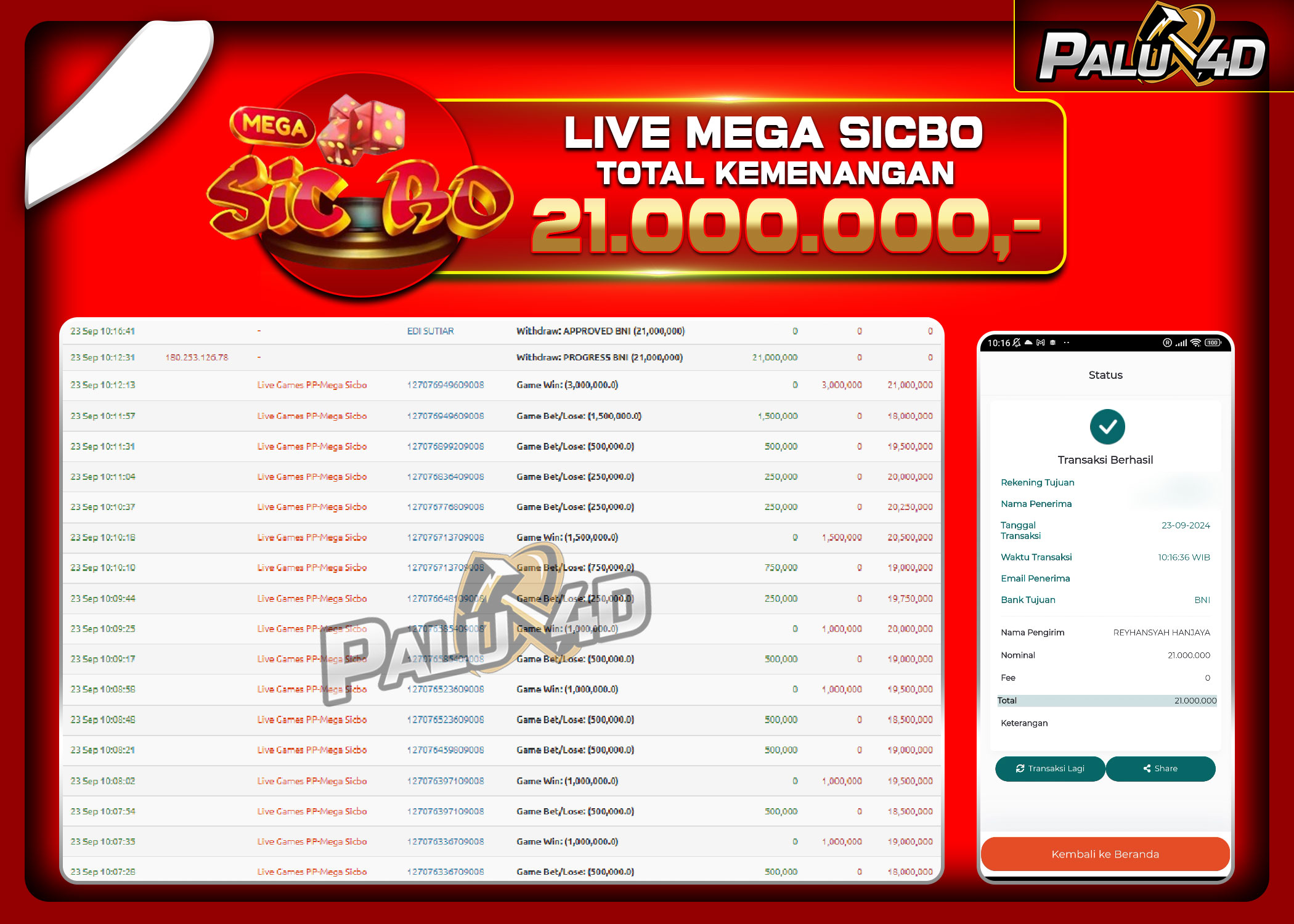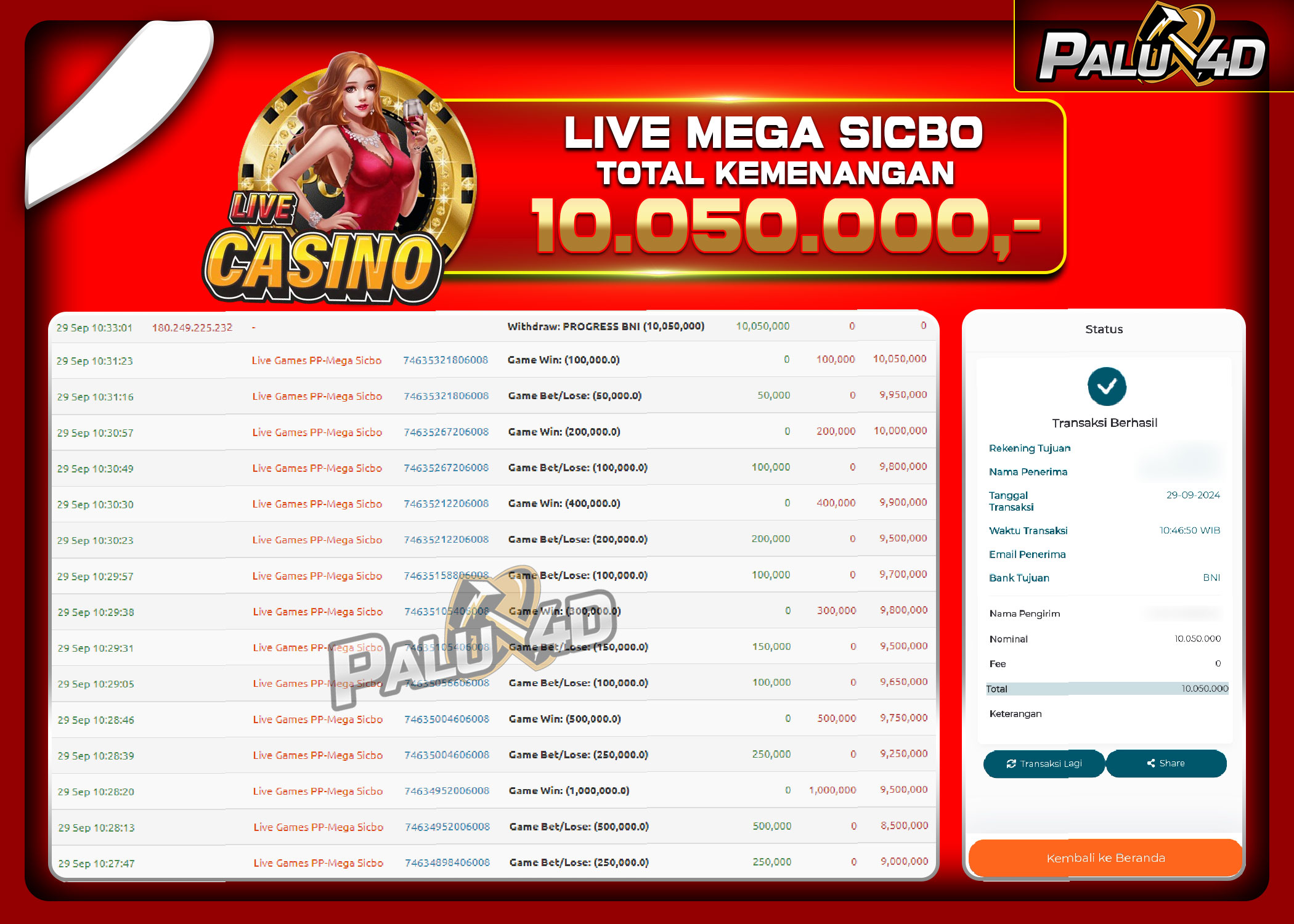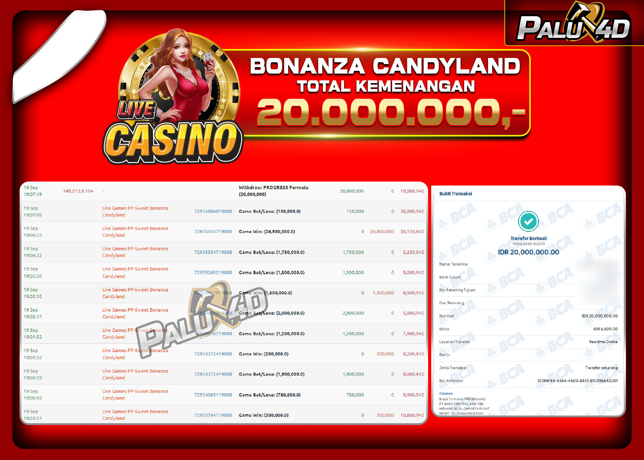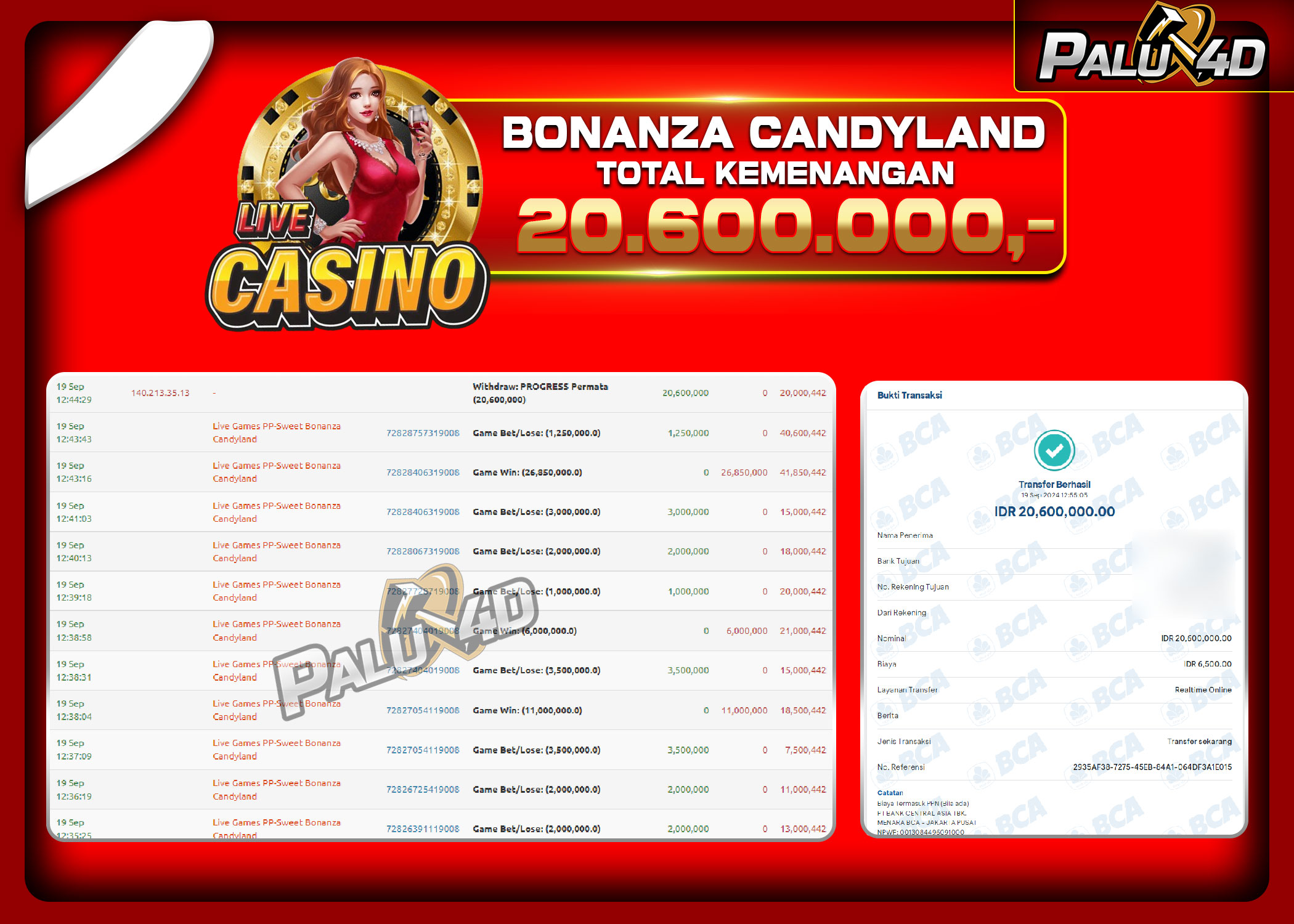 PALU4D – Menang LIVE CASINO SWEET BONANZA CANDYLAND Rp.20.600.000.,- LUNAS PALU4D – Selamat bagi pemenang yang mendapatkan jackpot hari ini 19 SEPTEMBER […]