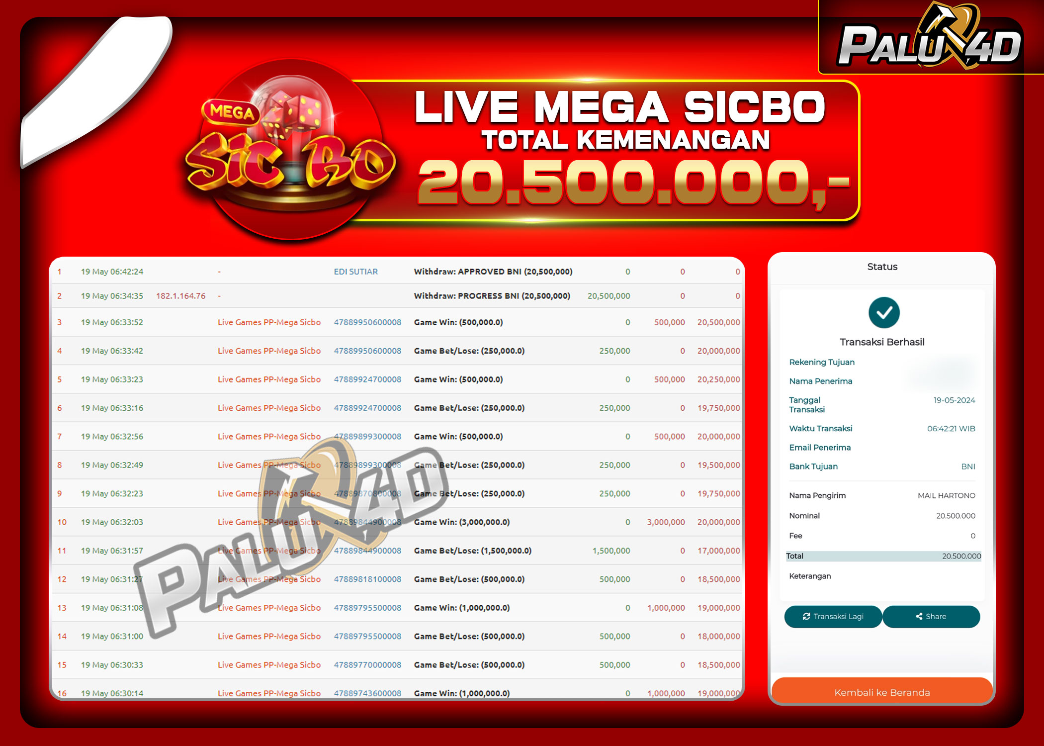30/05/2024LIVE CASINO PALU4D – Menang Live Games MEGA SICBO Rp20.500.000.,- LUNAS PALU4D – Menang Live Games MEGA SICBO Rp20.500.000.,- LUNAS PALU4D – Selamat bagi pemenang yang mendapatkan jackpot hari ini 19 May 2024 […]