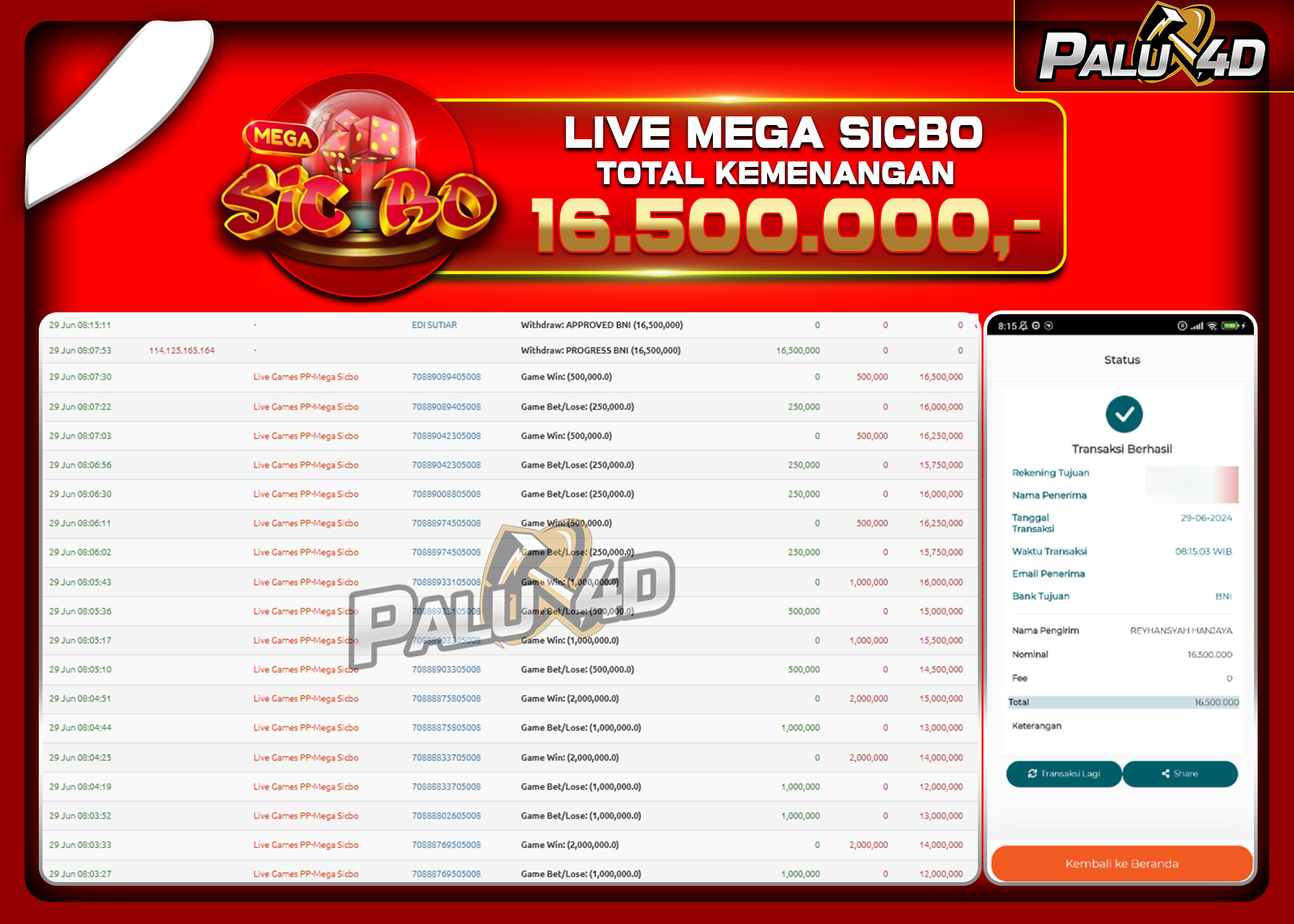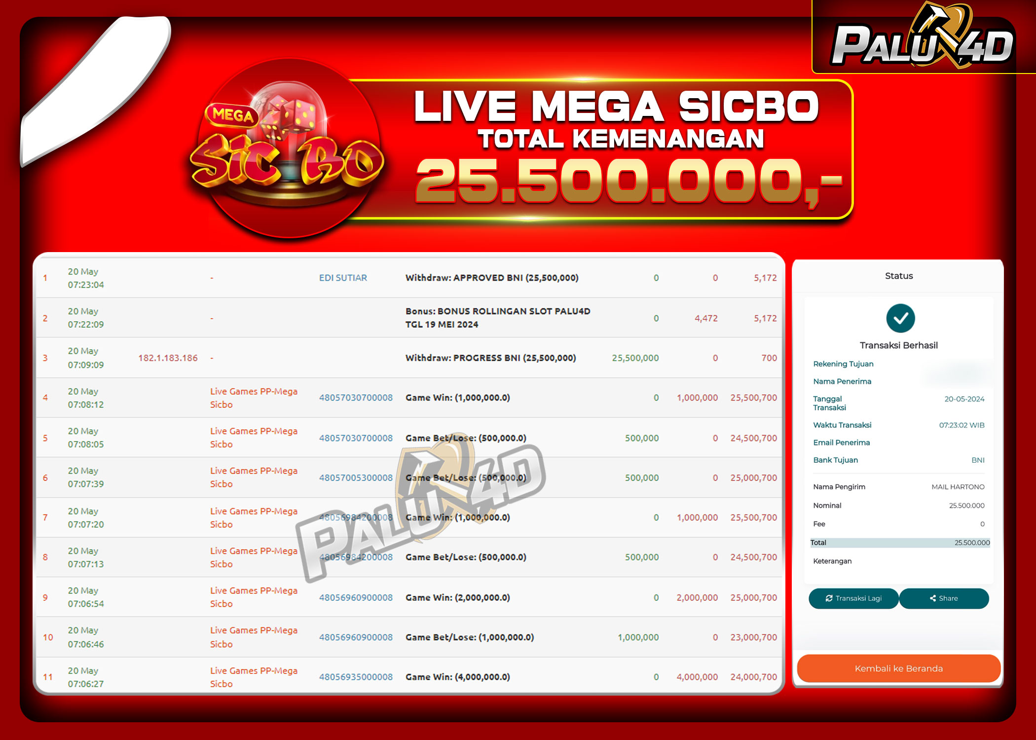 30/05/2024LIVE CASINO PALU4D – Menang Live Games MEGA SICBO Rp25.500.000.,- LUNAS PALU4D – Menang Live Games MEGA SICBO Rp25.500.000.,- LUNAS PALU4D – Selamat bagi pemenang yang mendapatkan jackpot hari ini 20 May 2024 […]