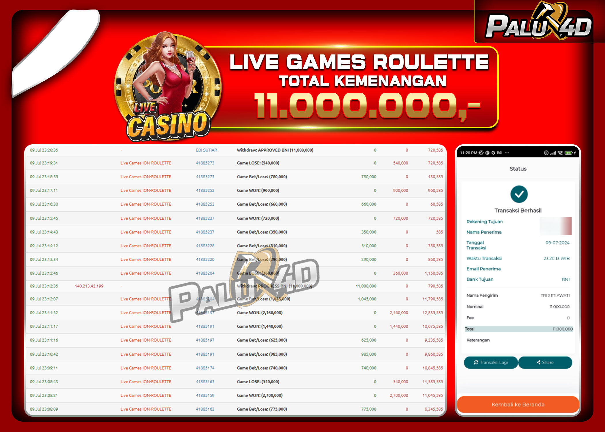 11/07/2024LIVE CASINO PALU4D – Menang Live Games MEGA SICBO Rp13.000.000.,- LUNAS PALU4D – Menang Live Games MEGA SICBO Rp13.000.000.,- LUNAS PALU4D – Selamat bagi pemenang yang mendapatkan jackpot hari ini 12 July 2024 […]