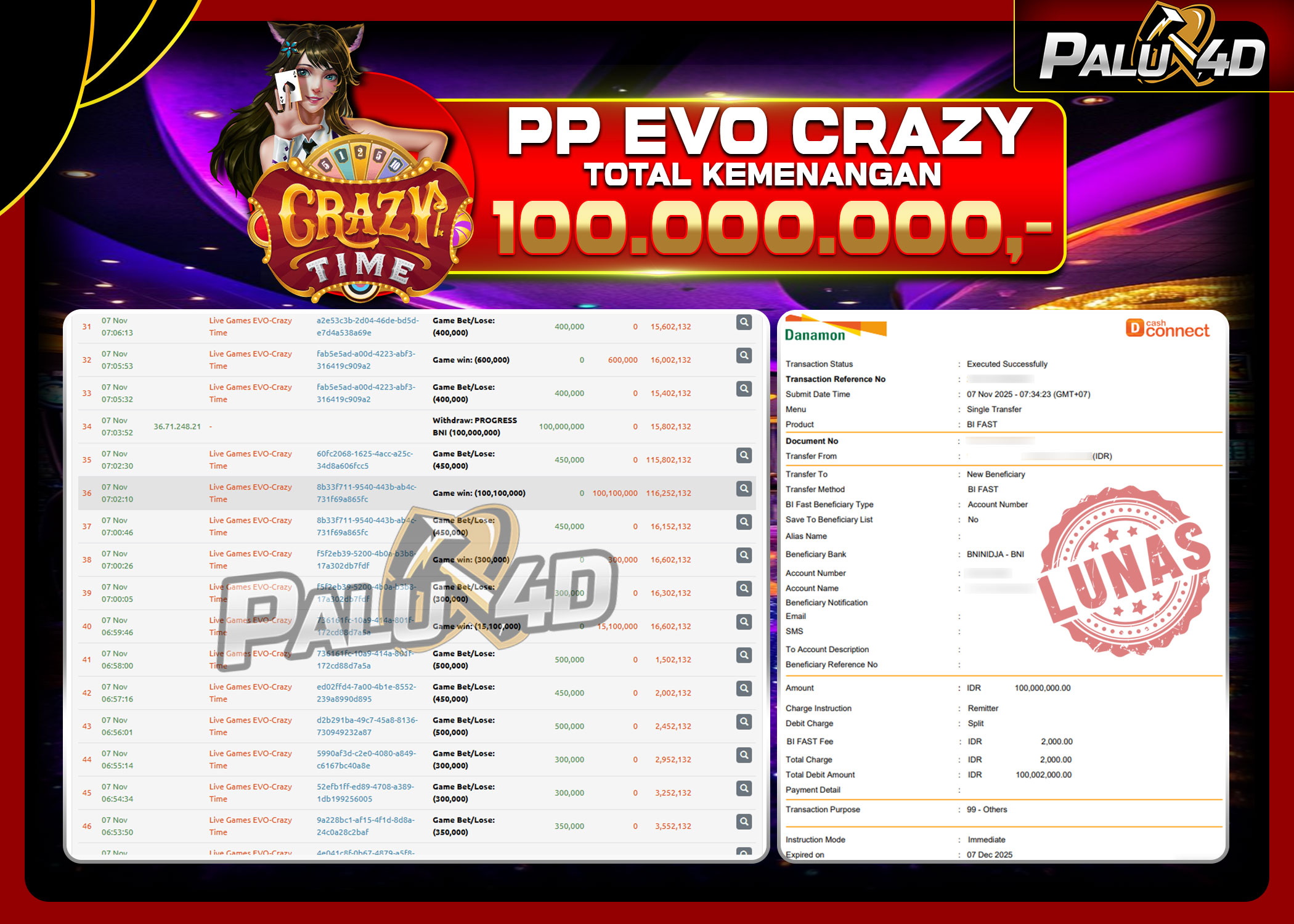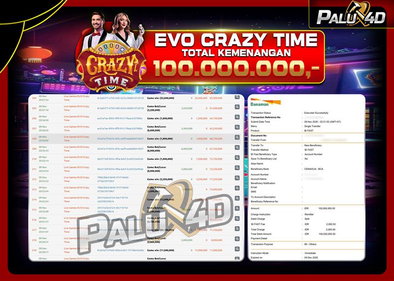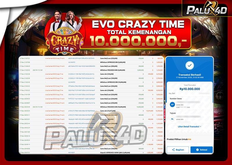 22/11/2025LIVE CASINO PALU4D – Menang Live Games EVO CRAZY TIME Rp 50.000.000.,- LUNAS PALU4D – Menang Live Games EVO CRAZY TIME Rp 50.000.000.,- LUNAS PALU4D – Selamat bagi pemenang yang mendapatkan jackpot hari ini 20 […]