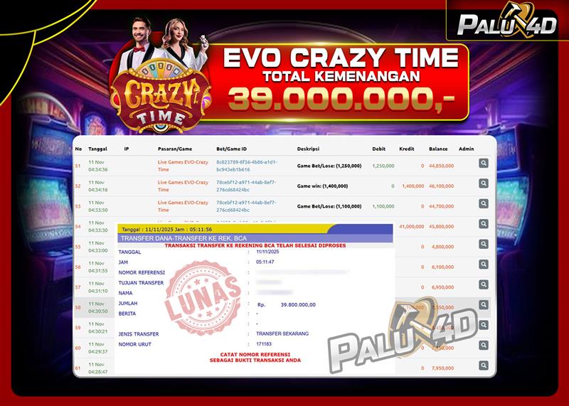 15/11/2025LIVE CASINO PALU4D – Menang Live Games EVO CRAZY TIME Rp 39.000.000.,- LUNAS PALU4D – Menang Live Games EVO CRAZY TIME Rp 39.000.000.,- LUNAS PALU4D – Selamat bagi pemenang yang mendapatkan jackpot hari ini 11 NOVEMBER […]