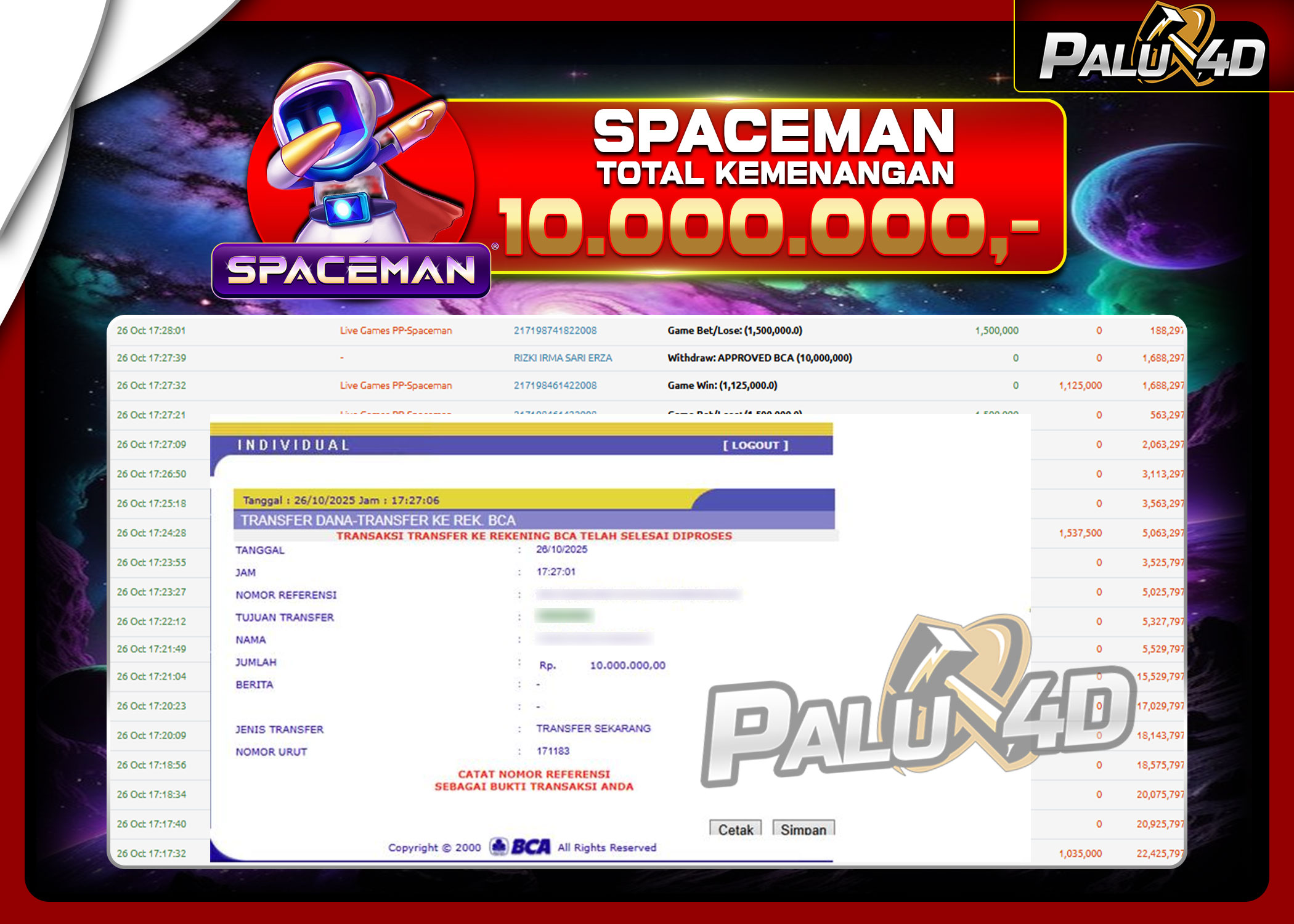 28/10/2025LIVE CASINO PALU4D – Menang Live Games SPACEMAN Rp 10.000.000.,- LUNAS PALU4D – Menang Live Games SPACEMAN Rp 10.000.000.,- LUNAS PALU4D – Selamat bagi pemenang yang mendapatkan jackpot hari ini 26 Oktober 2025 […]